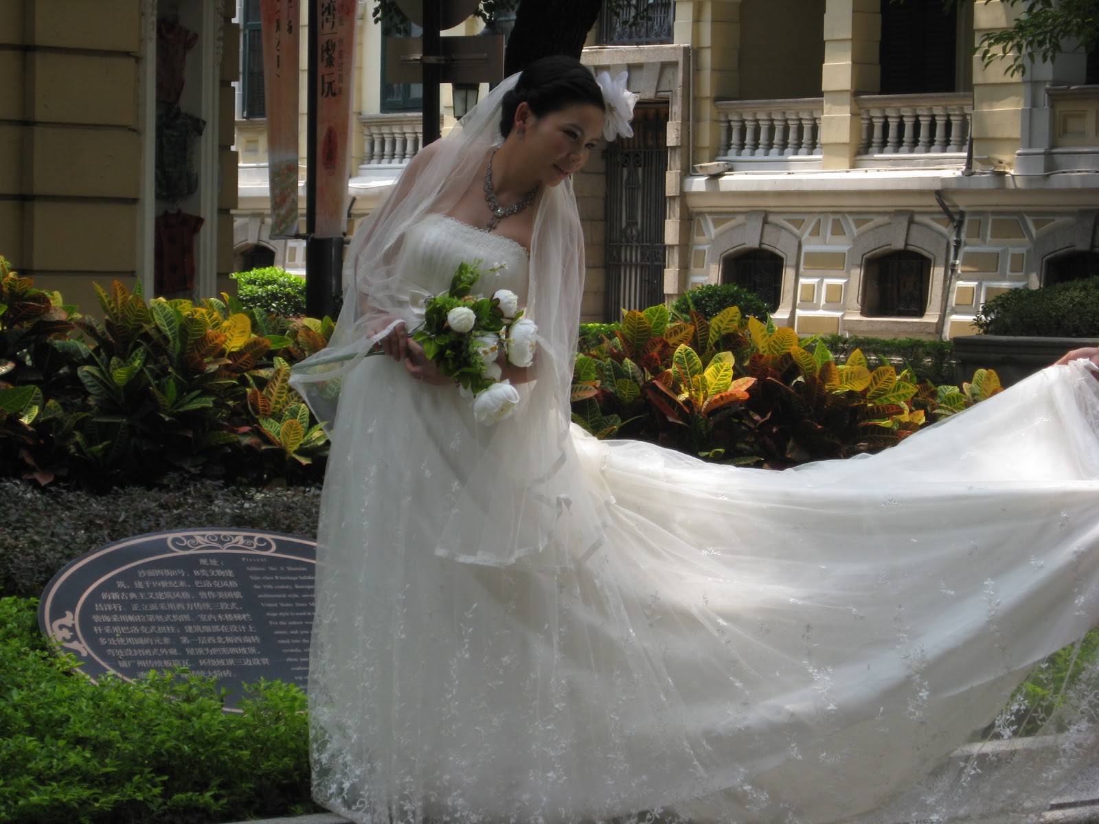 What caught our eye when getting out of our taxi, and what seemed to captivate Cai Yun the most, were brides and grooms posing for photographs - they almost seemed like they were models posing as brides and grooms - or do the brides always wear their pink Converse under their gowns? Cai Yun taking photo after photo, caught some of the models' attention, followed by big smiles.